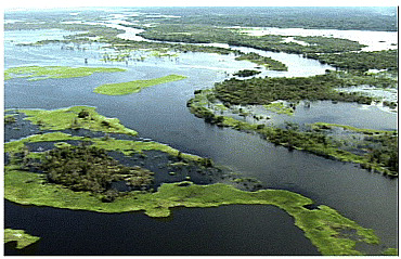 Water flow in wetlands is complex and not easily confined, unlike river channels with well-defined banks. This complexity is best measured from a satellite with two-dimensional elevation mapping capabilities. This image, featured on the AGU homepage in January 2008, was derived from Alsdorf et al. (2007, Figure 1).